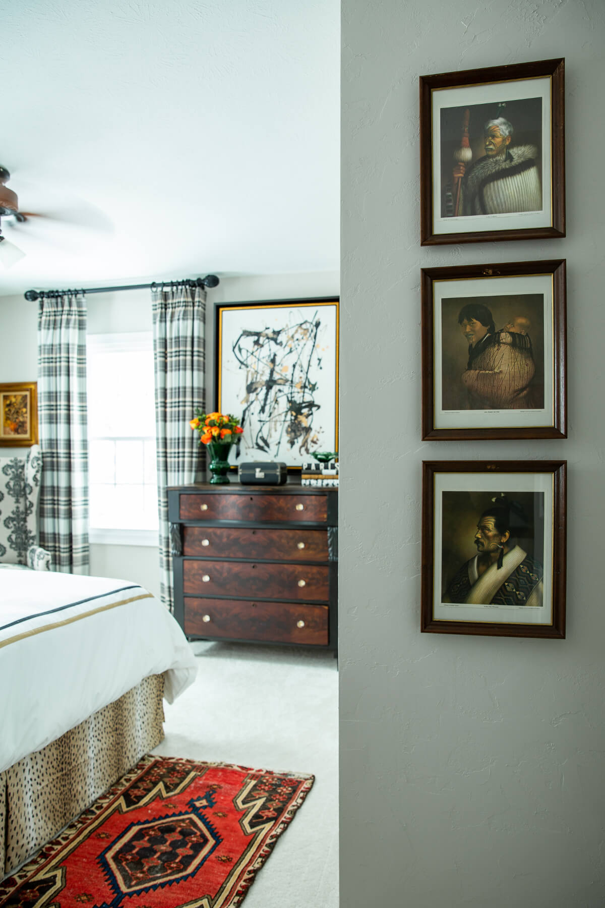 The painting above the bed is actually something my great-grandmother painted. It was in my grandma’s house my whole childhood, and I always really liked it. My grandma is in assisted living now and couldn’t take a lot of her things with her, so I inherited this painting. I love the greens and browns – it couldn’t be more perfect for the space.